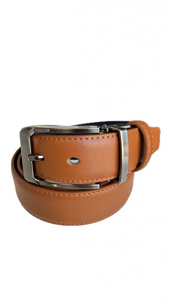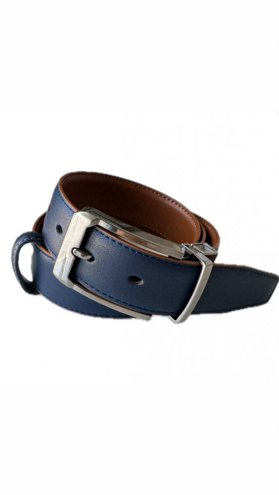 Pasek skórzany dwustronny , camel+granat. Odpinana klamra . Srebrna elegancka klamra.