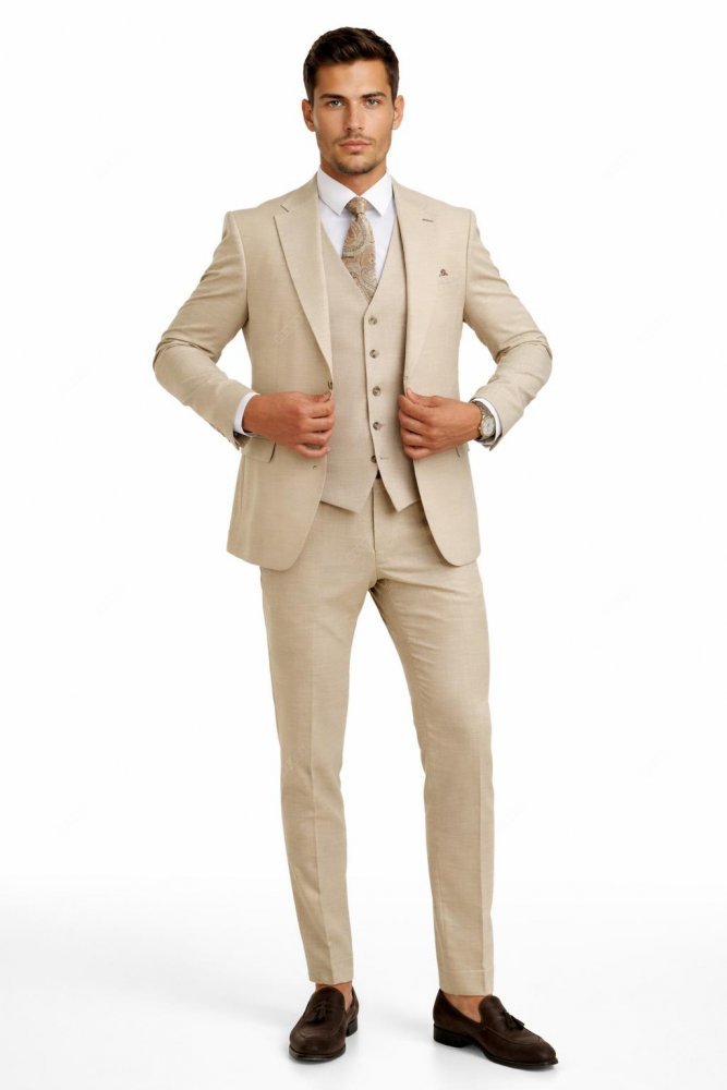 Garnitur męski trzyczęściowy H54 beżowy