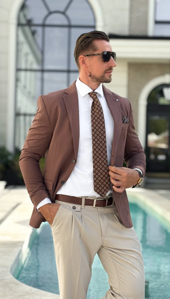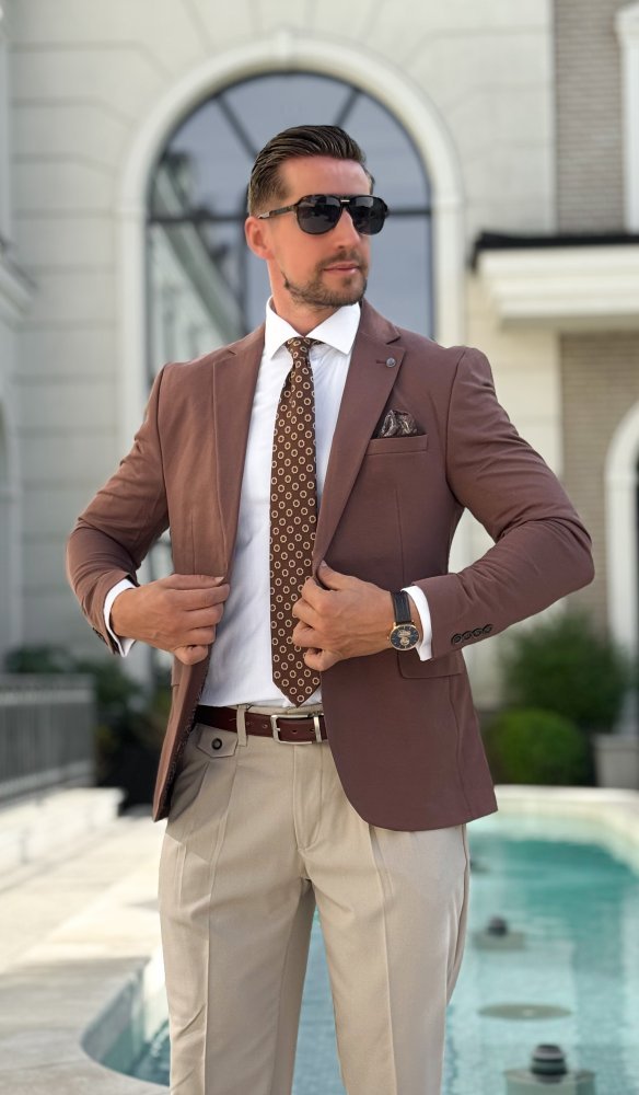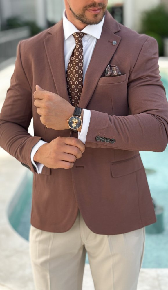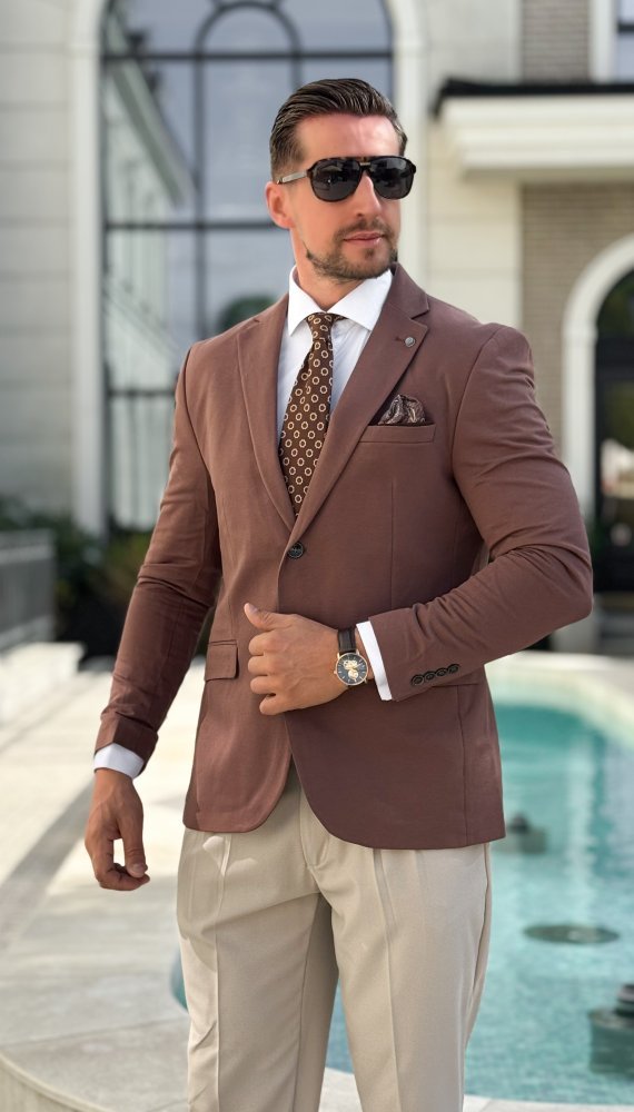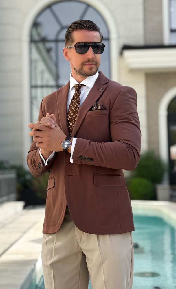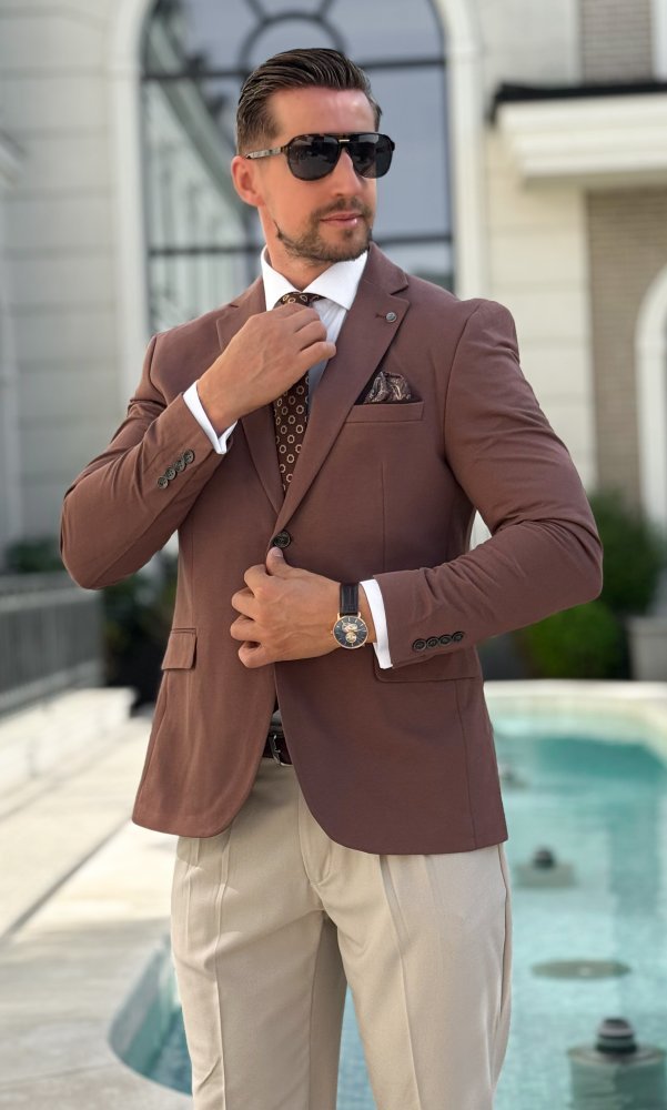Marynarka męska z dresowej dzianiny H106 - czekoladowa