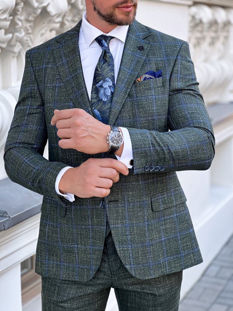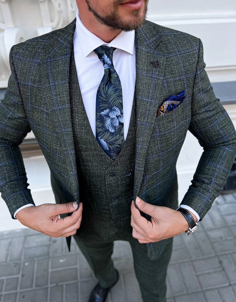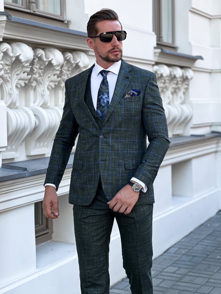 Marynarka męska z kamizelką w zestawie H113 ciemna zieleń