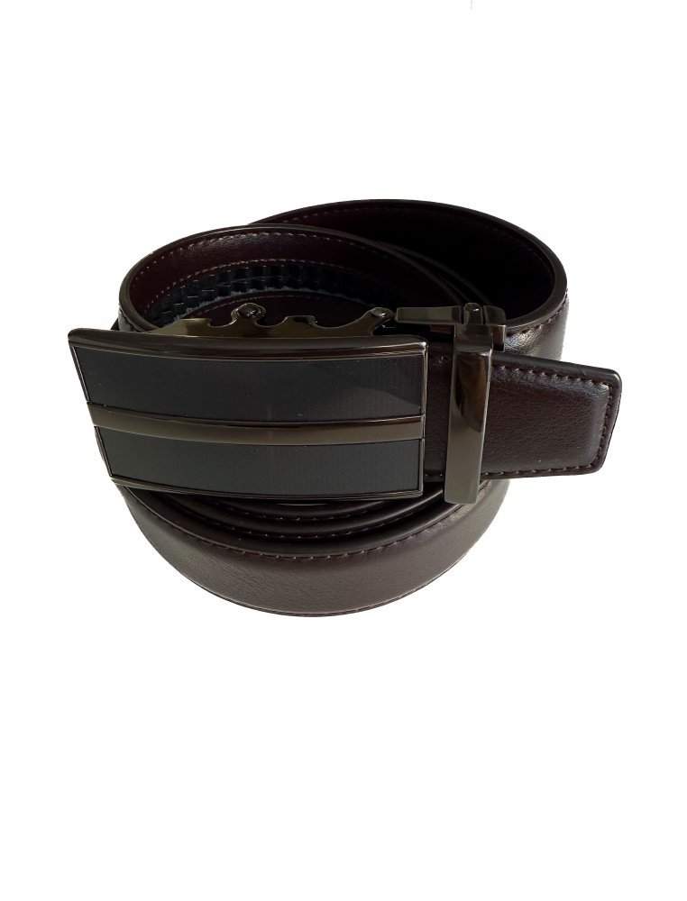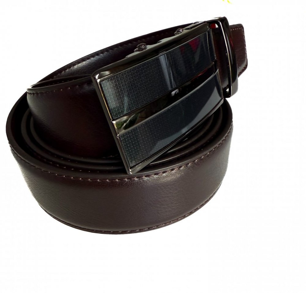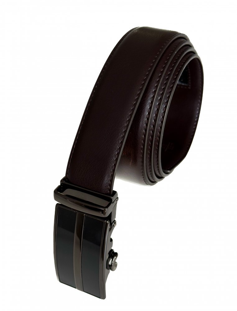 Pasek MĘSKI ze skóry naturalnej z czarną, błyszczącą klamrą.