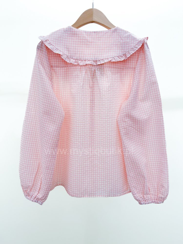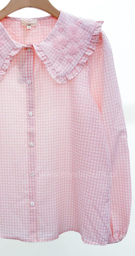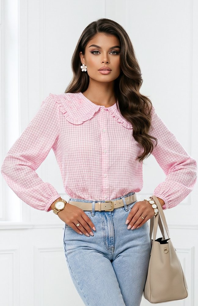 Koszula w kratkę z kołnierzem w stylu Baby Doll - pudrowa