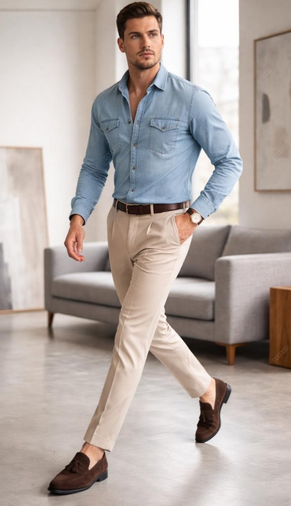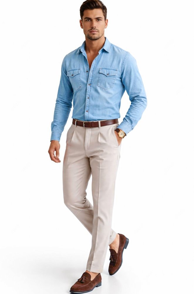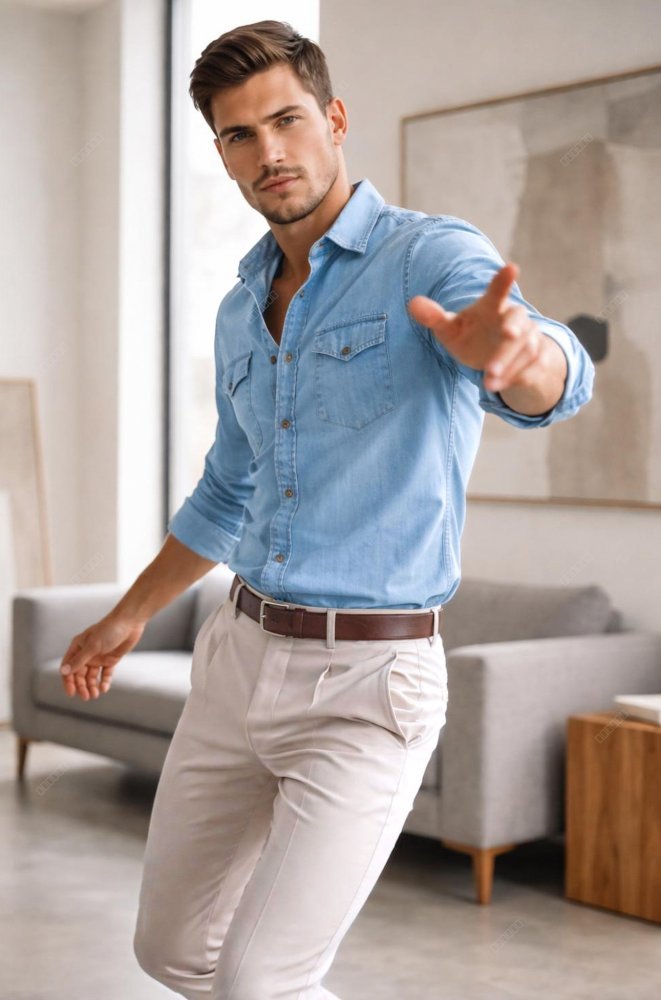 Koszula męska z klasycznym kołnierzem TYPU SLIM. Stylowy jeans nigdy nie wychodzą z mody.